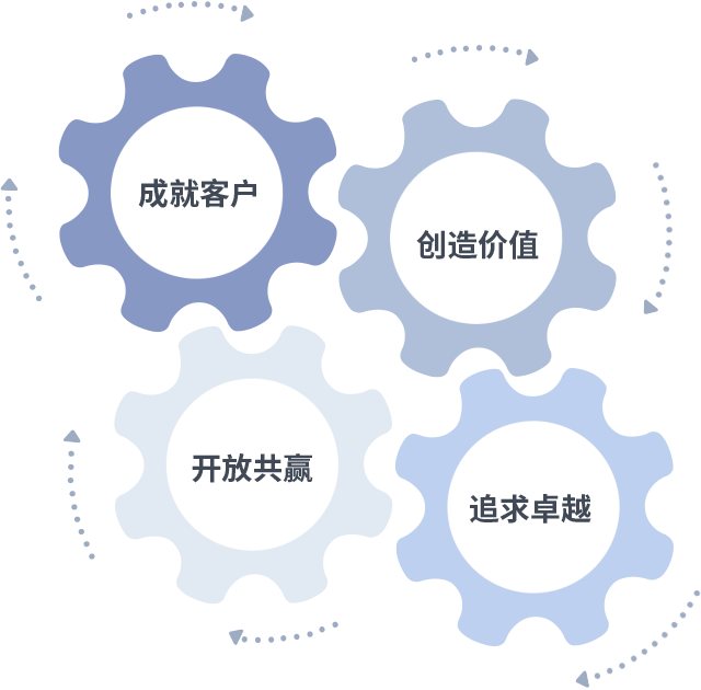 成就客户是一切决策的出发点,创造价值是衡量所有工作的标准,追求卓越是Z6尊龙做事做人的态度,开放共赢是Z6尊龙的格局也是最终的结果。价值观的齿轮环环相扣,推动着组织里的每个人不断向前。